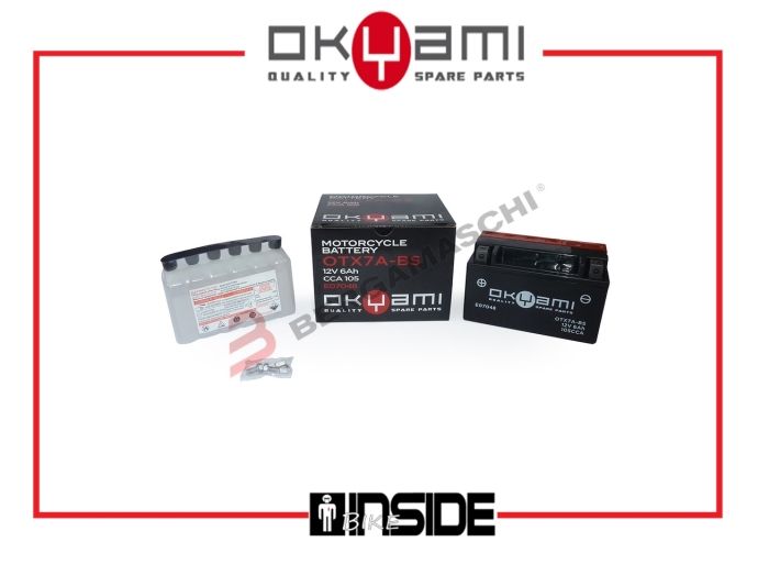 Senza manutenzione con acido a corredo (MF Maintenance Free); 12 V 6 Ah 150x87x94 mm; Acido 0,39 l; Corrente carica 0,60 A; CCA 105