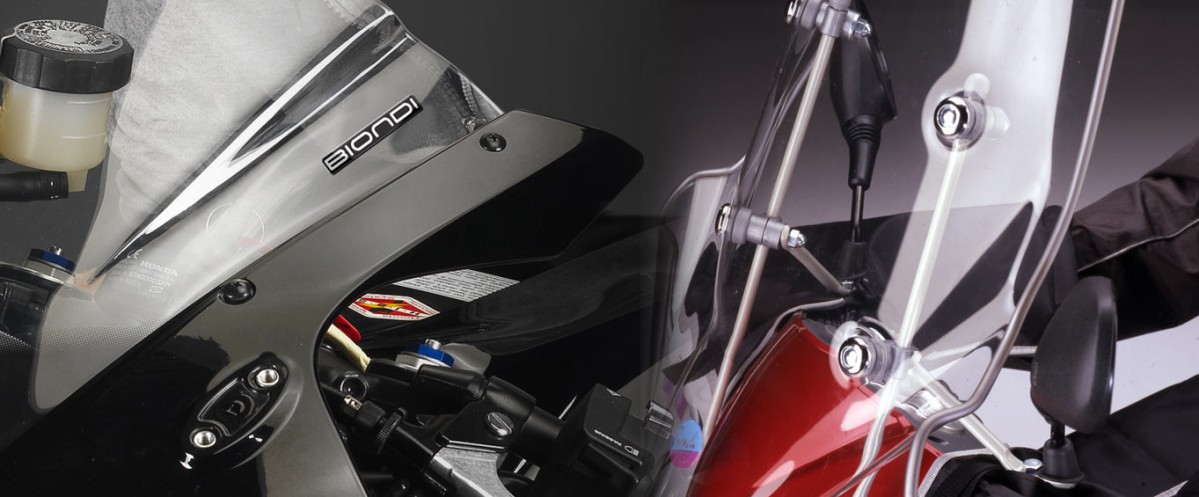 BIONDI è un' azienda leader nella produzione, interamente made in Italy, di accessori per scooter e moto nel settore specifico dei parabrezza e cupolini. Dedicandosi negli anni nella realizzazione di questi accessori per ogni singola marca e modello, vanta oggi su un vastissimo catalogo di articoli in grado di mettere a disposizione della clientela una soluzione per ogni specifico mezzo. Per qualsiasi marca e modello presente sul mercato dagli anni ’50 il cliente può trovare l’accessorio per lo specifico modello richiesto. Un parabrezza o un cupolino Biondi completa uno scooter o una moto migliorando la sua prestazione. Un parabrezza o un cupolino Biondi è il risultato finale di un processo di sperimentazione, studio e design che mette in grado ogni scooterista o pilota di moto di soddisfare la sua esigenza al massimo della tecnica e dello stile in completa sicurezza. Questo perché Biondi realizza prodotti realizzati con elevati standard di qualità per innovazione, sicurezza e soddisfazione del cliente. Prodotti capaci di arricchire l’equipaggiamento di uno scooter o di una moto migliorandone il comfort e le prestazioni funzionali.