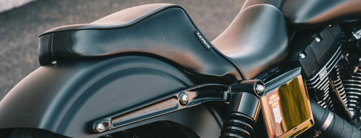 Keeping with our 45+ year tradition, we are one of the only seat companies still using steel exclusively for all of our seat bases. Our steel bases have helped build our reputation and year after year, have set us apart from the rest. Our perfected forming process has created our company's cleanest and tightest fitting base plates ever. For us, there is simply nothing like the secure feeling you get from steel. All of our brackets are securely welded or bolted with weld nuts to each plate - something not possible with fiberglass or plastic. After checking out our seats, you'll never look at another base plate the same way again. We only use the highest quality materials in each and every one of our seats. Looking through our catalog you will see the pride and dedication we take in combining all of the features below, into the finest custom seats money can buy. > Comfort in each seat is produced by our specially poured high density "Marathon" molded foam foundation. > All seats are built on a beautifully powder-coated steel base plate edged with a metal reinforced vinyl protectant. > The bottom of every base plate is carpeted providing a friction- free surface between seat and fender. > Every inch of material is pulled tight around the edges and trimmed leaving only the cleanest finish possible. (We know you can't see the bottom of our seats when they're on the bike, but its the little details that make a LePera seat... A LePera seat.) > All LePera seats are covered with a premium naugahyde or top grain leather. > All covers are double stitched with bonded polyester thread. Our craftsmanship, as well as cutting edge design, have put us at the forefront of the custom Harley seat world. Focusing on Harleys exclusively has enabled us to create the perfect relationship between seat and motorcycle. We have crafted a defining balance between form and function. Every seat we make has its own unique style that transforms the personality of your bike. Our most popular seats are based on what we call "pure form." These seats rely solely on a shape so pure, they singlehandedly create the look and flow of the motorcycle.The Silhouette, King Cobra and Bare Bones are three such designs. Their simplistic lines are what make them the most stylish seats available today. Even our touring based seats are an exercise in style, form and function. Both the Maverick and the new Sorrento are intentionally designed to compliment, not overpower the lines of the bike. Their relative low profile and non-confining contours contrast the traditional, bulky "road couches" available elsewhere. Here at LePera, we're always taking seat design to the next level. That's what has built our reputation as a trendsetter ... constantly pushing the limits of what a seat can be.
