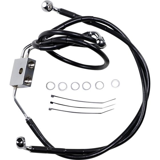 DRAG SPECIALTIES 612137-8BLK BRAKE LINE STAINESS STEEL BLACK COATED FRONT/UPPER/LOWER EXTENDED +8'