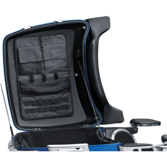 Fissaggio sicuro utilizzando attacchi con aggancio sul coperchio e chiusure a strappoInclude una borsa per coperchio e un astuccio portautensili/beauty case con M.O.L.L.E. integratoTre tasche portaoggetti separate per un'organizzazione ottimaleSistema M.O.L.L.E. integrato per fissare l'astuccio portautensili incluso o da usare come organizer utensiliIn poliestere resistente a 1200 denari con trattamento anti-UV e antiumidita`Non compatibile con Tour-Pak in pelleFor models with Harley Davidson King, Ultra or Chopped Tour-PakMaggiori Informazioni| Codice Prodotto | 5838 |