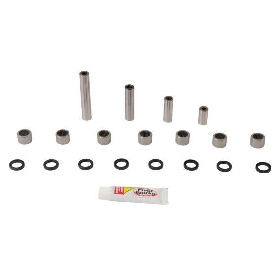 Ogni kit Pivot Works contiene tutti i pezzi necessari (cuscinetti, guarnizioni, spinotti, distanziali, collarini, rondelle di spinta e cuscinetti reggispinta) per completare il lavoro senza ordinare una lista infinita di componenti.