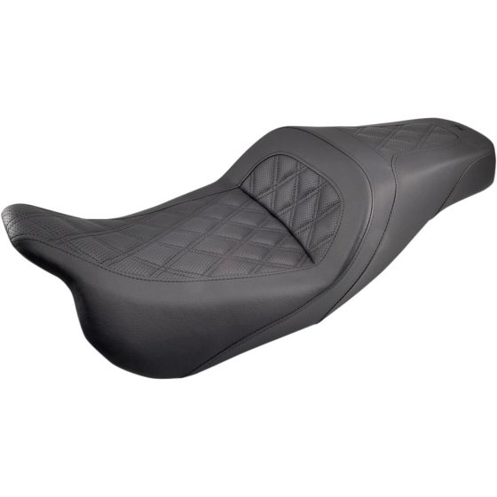 SADDLEMEN 808-07B-162 2-UP SEAT SLIM FRONT REAR LEATHER SADDLEHYDE SADDLEGEL BLACK