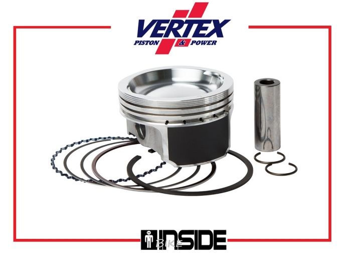 I pistoni Vertex, il vero fiore all'occhiello dell'azienda, sono interamente prodotti in Italia e sono primo equipaggiamento di numerose case europee produttrici di moto e go-kart come KTM. Vertex offre agli esperti di elaborazioni. pistoni di alta qualità tecnologicamente ai vertici del settore. I segmenti assemblati da Vertex sui propri pistoni sono fabbricati in Giappone secondo i massimi standard del settore dai fornitori OEM delle maggiori case giapponesi di moto. I kit in vendita comprendono il pistone i segmenti lo spinotto ed i seiger I pistoni per motori 4 tempi vengono forgiati a caldo dalla lega per uso aeronautico 2618 mentre gli spinotti Vertex sono normalmente prodotti in acciaio legato con trattamento di cementazione. I pistoni 2 tempi, sono realizzati per fusione a gravità; da una lega di alluminio con contenuto di silicio pari al 18% e grazie a caratteristiche di espansione termica ridotta i pistoni Vertex per motori 2 tempi possono funzionare con tolleranze piu' ristrette rispetto ai pistoni forgiati.