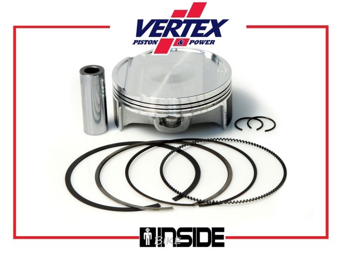 I pistoni Vertex, il vero fiore all'occhiello dell'azienda, sono interamente prodotti in Italia e sono primo equipaggiamento di numerose case europee produttrici di moto e go-kart come KTM. Vertex offre agli esperti di elaborazioni. pistoni di alta qualità tecnologicamente ai vertici del settore. I segmenti assemblati da Vertex sui propri pistoni sono fabbricati in Giappone secondo i massimi standard del settore dai fornitori OEM delle maggiori case giapponesi di moto. I kit in vendita comprendono il pistone i segmenti lo spinotto ed i seiger I pistoni per motori 4 tempi vengono forgiati a caldo dalla lega per uso aeronautico 2618 mentre gli spinotti Vertex sono normalmente prodotti in acciaio legato con trattamento di cementazione. I pistoni 2 tempi, sono realizzati per fusione a gravità; da una lega di alluminio con contenuto di silicio pari al 18% e grazie a caratteristiche di espansione termica ridotta i pistoni Vertex per motori 2 tempi possono funzionare con tolleranze piu' ristrette rispetto ai pistoni forgiati.